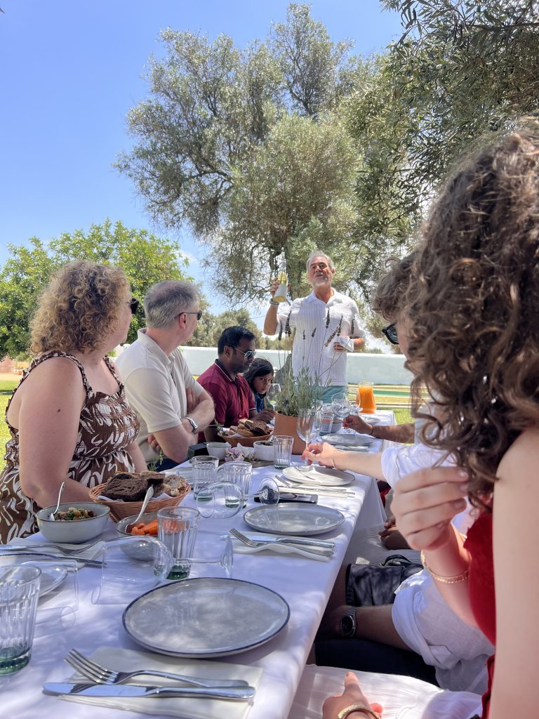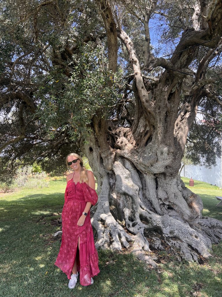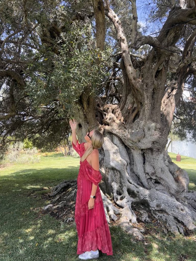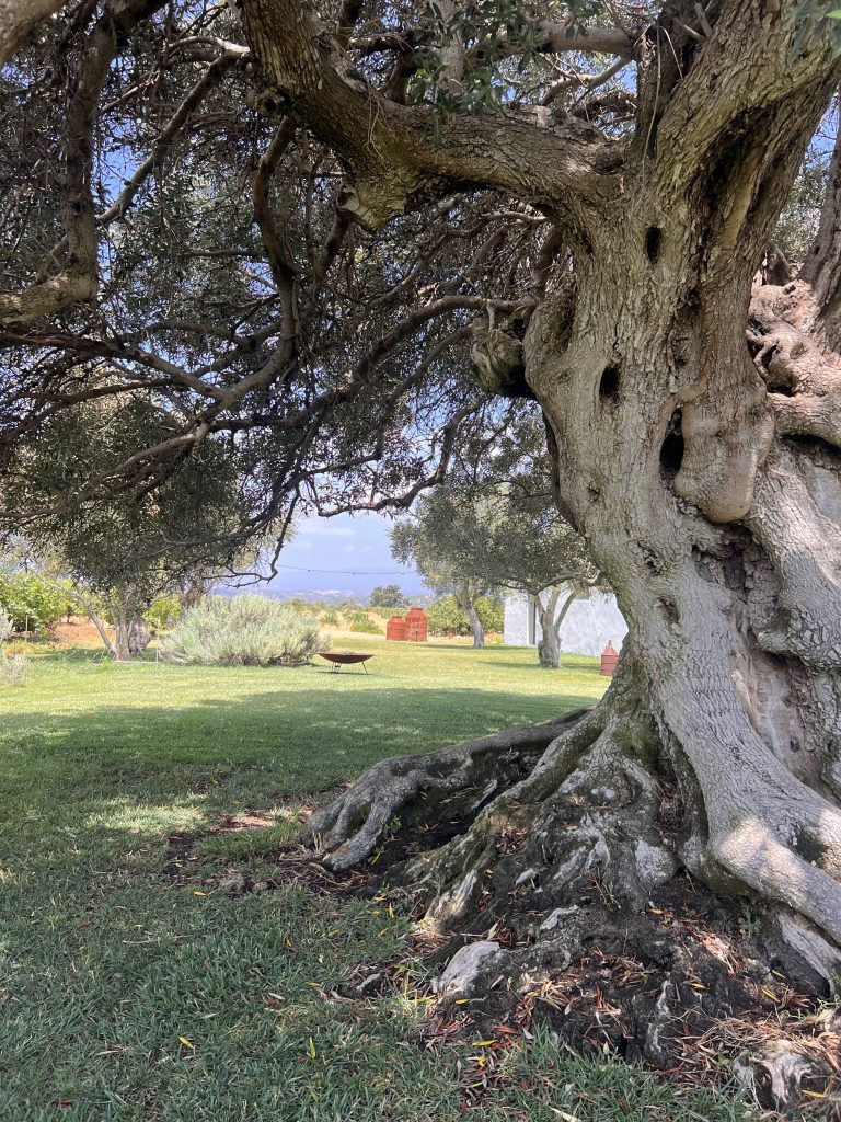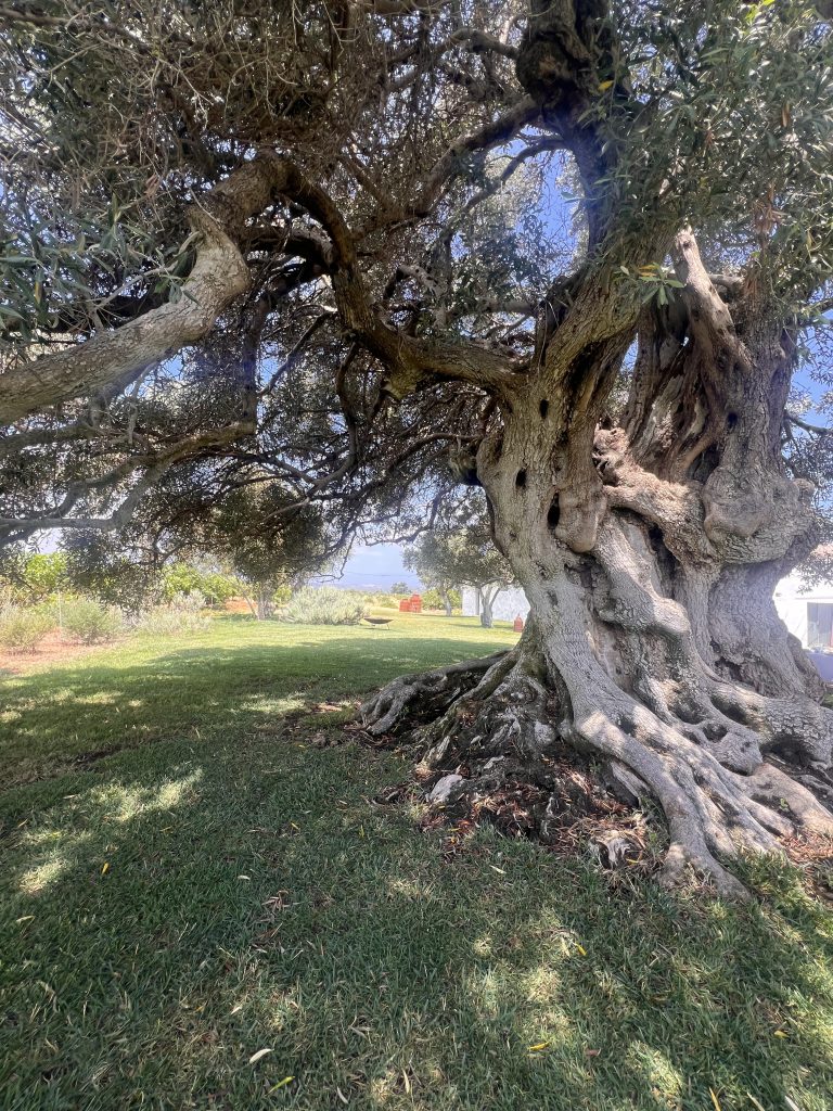 Imagine this: a 200+ year old olive tree, its wide silver-green branches casting gentle shade over a rustic wooden table. Around you, vines stretch across the land like lazy green rivers. The sun filters through the leaves, a soft breeze carries the scent of rosemary and fresh bread, and every glass of wine tastes like summer.